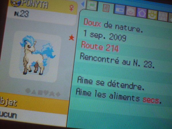 Je voulais mon Grahyéna Shiney @_@ j'en dormais plus! Pour Ponyta, c'est le pomon préféré de ma maman, alors elle m'a suppliée de continuer ma chaîne. Pour finir, j'ai eu un Ponyta shiney.